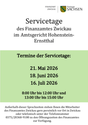 Servicetage des Finanzamtes Zwickau im Amtsgericht Hohenstein-Ernstthal