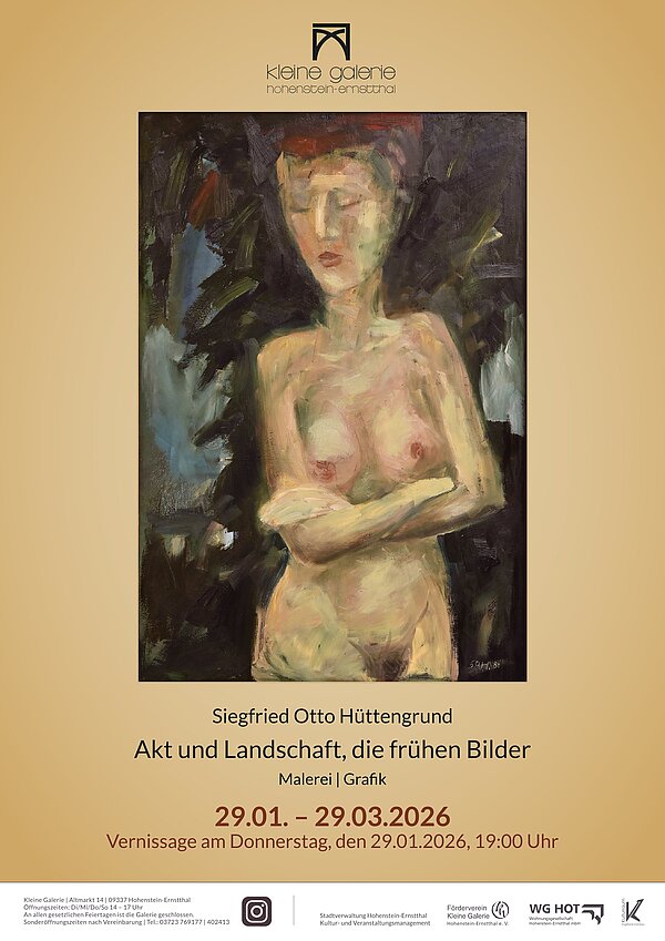 In der Kleine Galerie wird die Ausstellung „Akt und Landschaft – die frühen Bilder“ des Künstlers Siegfried Otto Hüttengrund präsentiert.