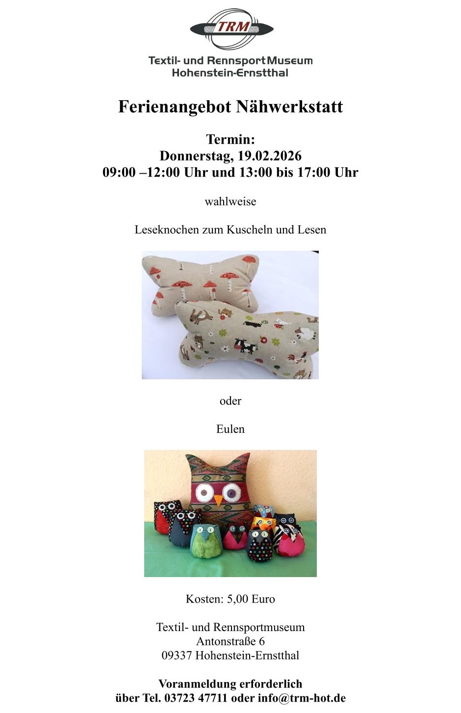 Ferienangebot Nähwerkstatt im TRM
