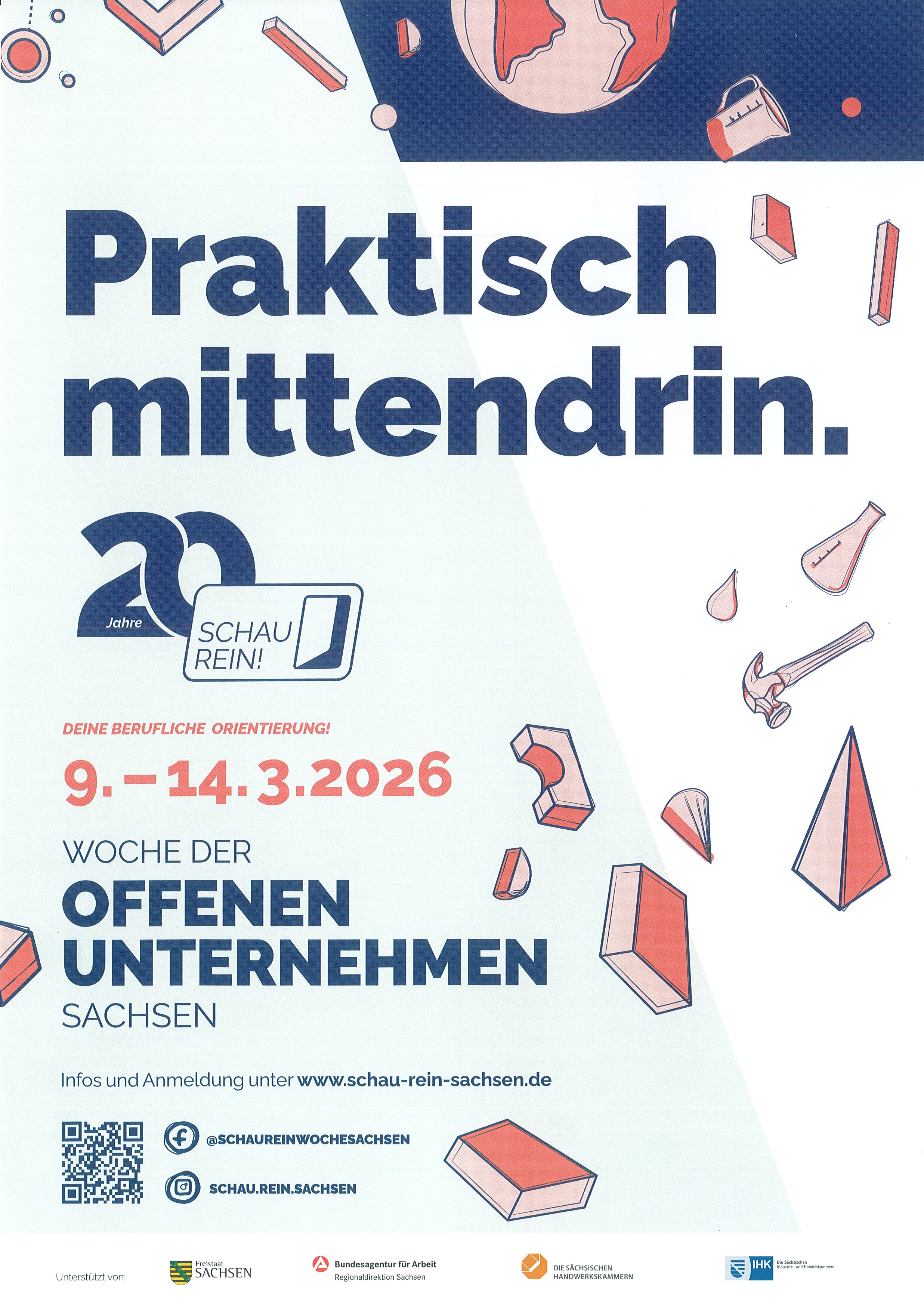 Vom 09. bis 14. März 2026 öffnet SCHAU REIN! - Die Woche der offenen Unternehmen Sachsen erneut die Türen zu Betrieben und Institutionen für Schülerinnen und Schüler.