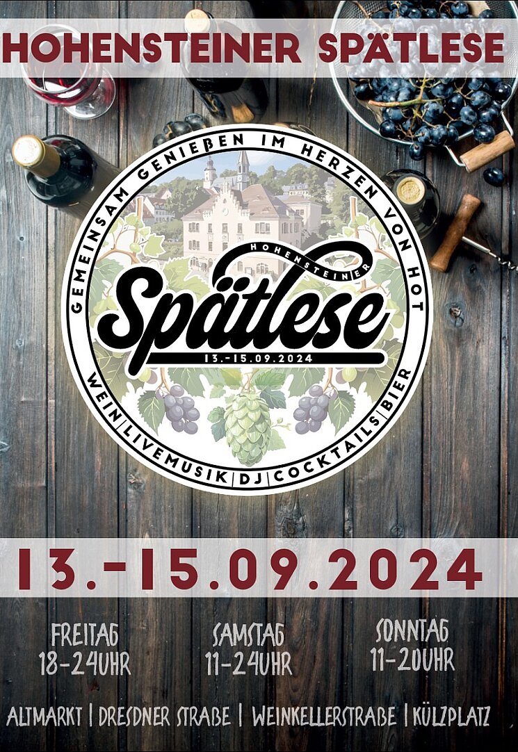 Außerdem ist in Vorbereitung die Altmarkt GP Party vom 11. bis 12. Juli und Premiere der "Hohensteiner Spätlese", welche vom 22. bis 24. August 2025 im Stadtzentrum (Altmarkt, Dresdner Straße, Weinkellerstraße und Dr.-Wilhelm-Külz-Platz) stattfinden wird.