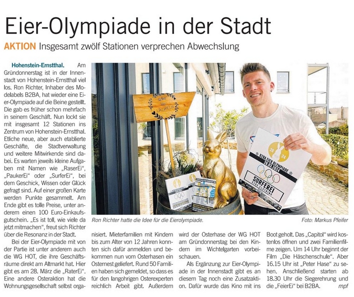 Zu den weiteren Aktivitäten zählte auch die Unterstützung des städtischen Kultur- und Veranstaltungsmanagements bei der Vorbereitung und Durchführung bereits etablierter Veranstaltungsformate wie Frühlingsfest (zuletzt am 21. April 2024), Altmarkt-Grand-Prix, Hohensteiner Jahrmarkt (2023 als Festwochenende im Rahmen der Jubiläumsfeier "125 Jahre Vereinigung von Hohenstein und Ernstthal") oder Weihnachtsmarkt. Ein neues Format ist die Hohensteiner Spätlese, welche Mitte September 2024 den früheren Hohensteiner Jahrmarkt ablösen sollte, aber witterungsbedingt leider abgesagt werden musste. Ein neuer Anlauf ist vom 22. bis 24.08.2025 geplant.